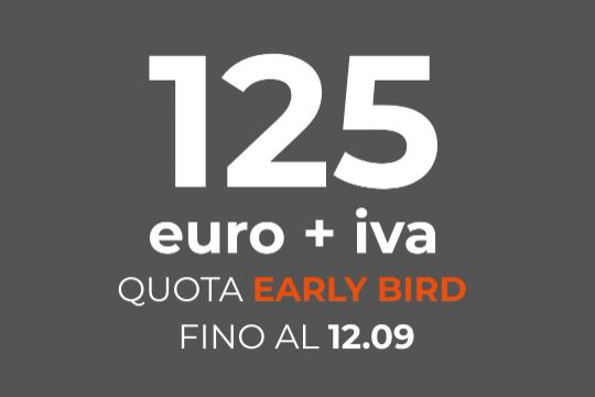 -PREZZO PIENO: € 150,00 + IVA a persona | € 125,00 IVA a persona per 2 o più iscritti